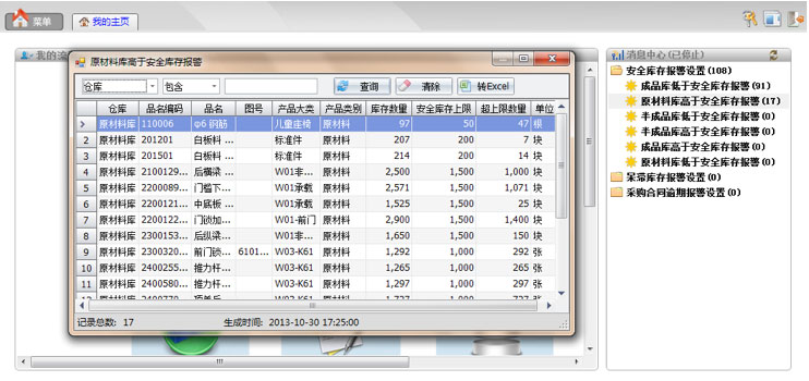 用户可以在网商ERP中设置安全库存的上限和下限,当库存数据出现异常时,管理者就可以根据报表实时查询,从而对其进行及时处理。